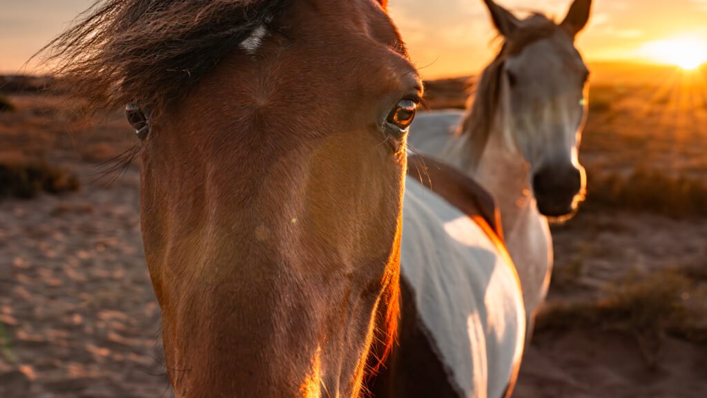 Sunrise paints the farmland in hues of gold and soft amber light.